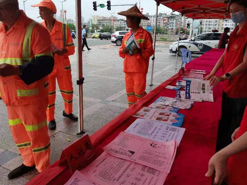 活动期间,在人力资源市场、市政府广场、沿街商铺等公共场所展示横幅、宣传标语、发放宣传材料,通过醒目的宣传画面引导大家关注诚信、了解诚信。同时,还向过往的群众、环卫工人、商铺等讲解诚信有关知识和诚信案例,详细介绍诚信对个人和社会的重要性,以及诚信对于个人发展和社会进步的积极影响,鼓励他们在日常生活中践行诚信,引导公众树立正确的价值观。本次活动,共发放宣传材料100余份,解答咨询70余人次。通过这次宣传活动,唤起公众的诚信意识,推动社会风气的正向发展。